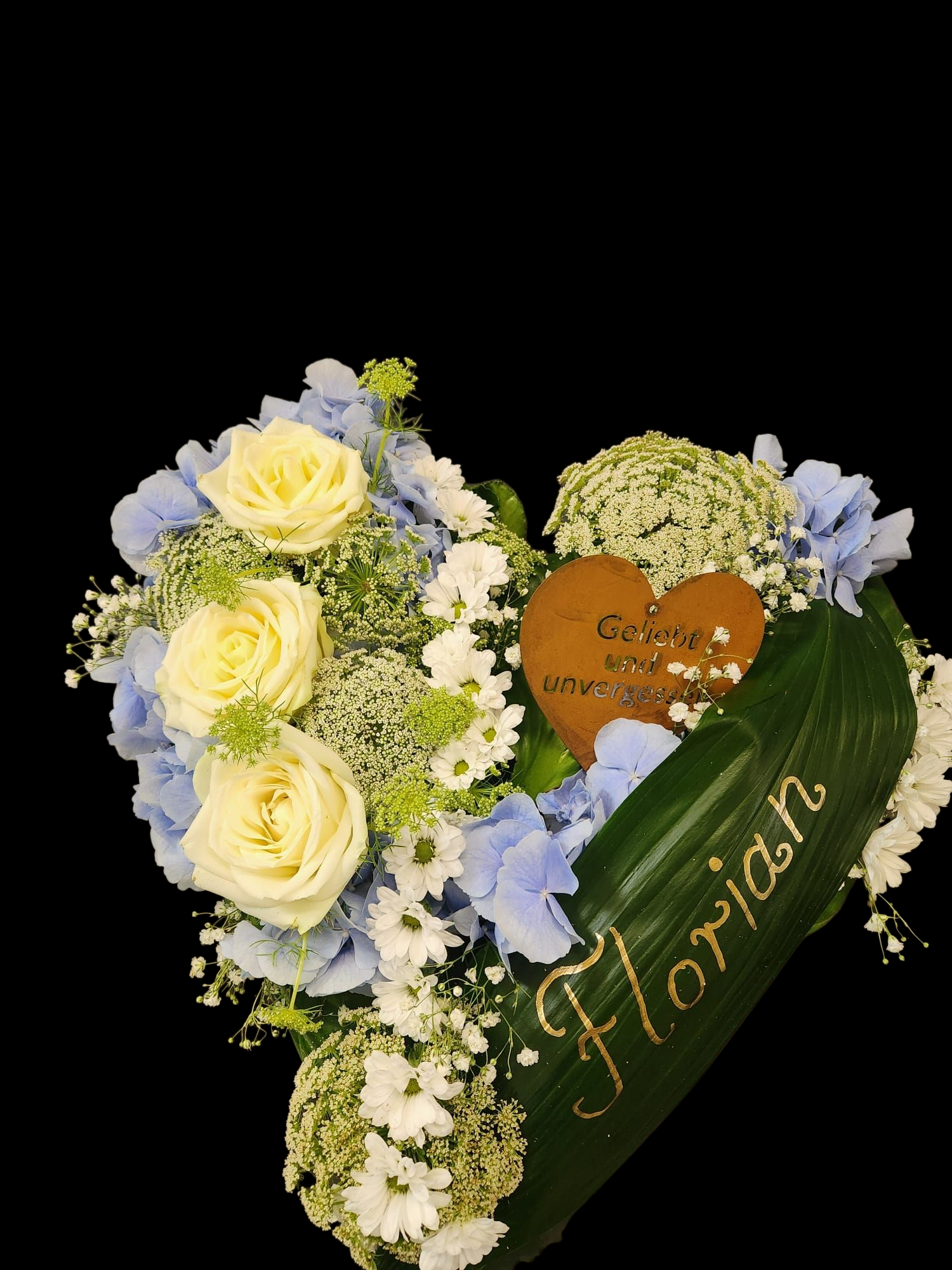 Unsere besonderen Gestecke setzten Erinnerungen in Form - ob, Herz, Stern, Flügel, Notenschlüssel oder individuell gestaltete Symbole. Jedes Arrangemnet wird mit viel Liebe zum Detail gefertigt und verbindet Ästhetik mit Symbolkraft. So entsteht ein stilvoller Abschied mit persönlicher Bedeutung, der in Erinnerung bleibt.
